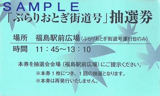 同列車福島行の乗客を対象とした抽選会が福島駅で開催されました。その参加用として車内で配布された抽選券。抽選会に参加しなかったので手元に残せました。