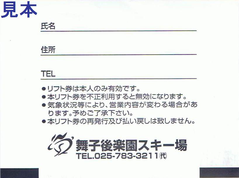 舞子後楽園スキー場時代のリフト1日券です。地紋は『Maiko』。