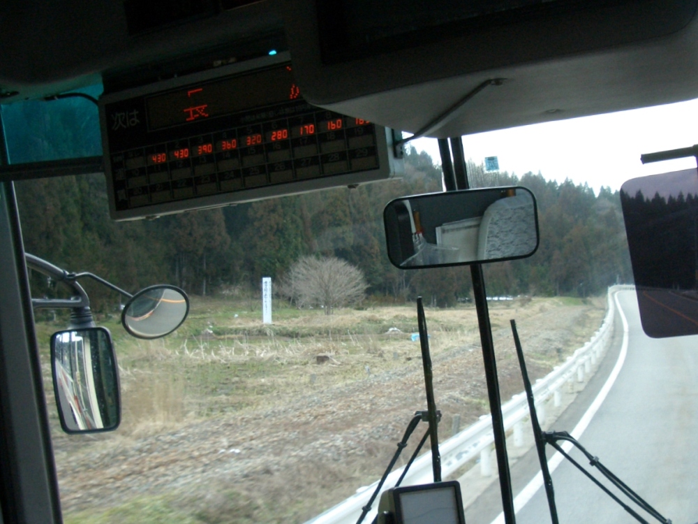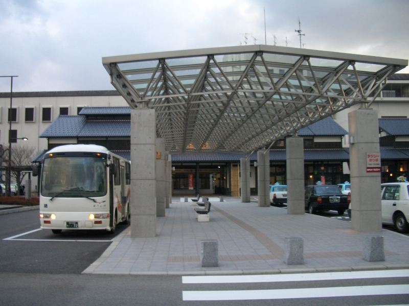 穴水輪島線の沿線に所々廃線跡が見えるが、それと同様に道路もアップダウンを繰り返し海が見えないところを走る。途中は人家が非常に少ないが、終点近くになってようやく開けてきた。『駅前』には大型ショッピングセンターがあり、そこそこ賑わっているが、春休み期間中の土曜夕方にしては観光客らしき者が全くいないのが辛いところ。のと鉄道廃止時に登場した輪島市を巡回するコミュニティーバス『のらんけバス』も乗客ゼロ〜数名。駅前は観光地らしくきれいに整備されているにも関わらずである。