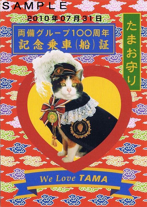 両備グループの中核企業である両備ホールディングス株式会社の創業100周年を記念して、両備グループの交通機関(和歌山電鐵、岡山電気軌道、両備バスグループ、両備フェリーグループ、両備タクシーグループ)で配布された記念乗車(船)証。私は東京都内でタクシー事業を行うハロー・トーキョーを利用し入手しました。デザインは和歌山電鐡たま駅長の写真とイラストを使用しています。猫駅長として全国的に有名になり、貴志駅の駅舎もたまステーションとして建て替えられました。グループ内でも特に話題性が高いために記念乗車(船)証にも取り上げられたのでしょう。しかし、両備ホールディングスの創業時は西大寺軌道(後の西大寺鉄道⇒両備バス西大寺鉄道線)という会社で、記念乗車(船)証の表裏ともに西大寺軌道(鉄道)に関連した文字、写真、イラストが一切使用されていない点は非常に気になります。