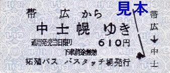(硬券)帯広から中士幌ゆき 610円
