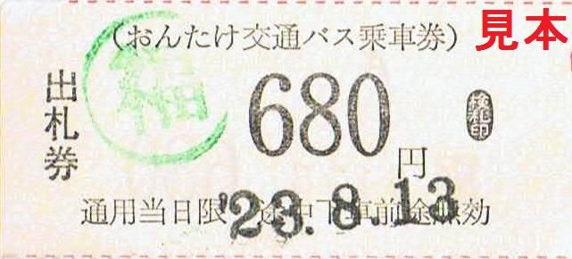 《おんたけ交通バス乗車券(木曽福島駅前・平成23年8月13日収集)》
