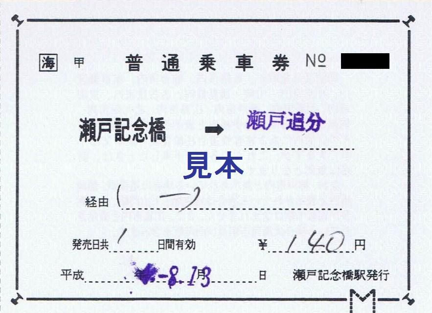 ともに瀬戸西線区間として最安の券を収集しました。《瀬戸追分駅発行の補充片道乗車券》