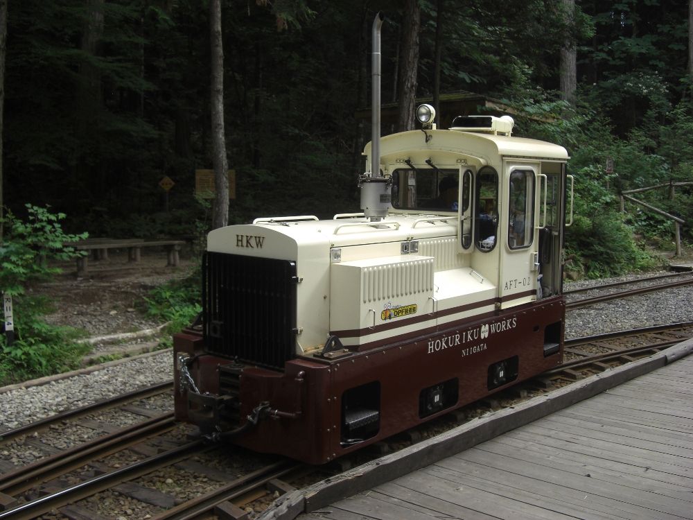 現在の主力機関車は平成21年11月に納車された北陸重機製AFT-02機関車。平成8年製のAFT-01よりも側面の窓が縦長になっています。