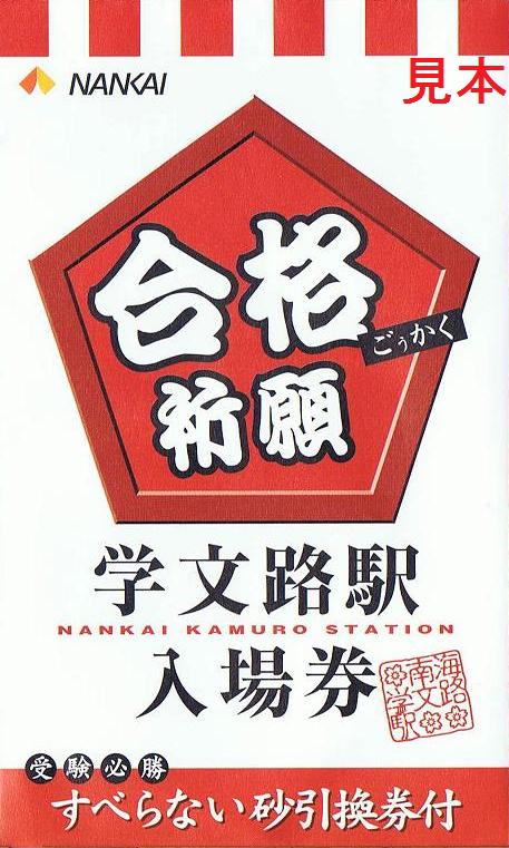 南海電気鉄道の通信販売で購入しました。『受験にパス』するため、パスケース(写真左はそれに入った状態)に5枚綴りの入場券(写真右)とすべらない砂引換券が入っています。《2008-2009年版》