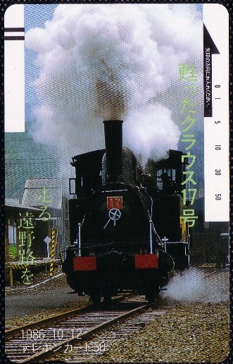 写真のテレホンカードは、昭和61年10月12日の遠野駅構内走行シーンの図柄で、会員向けに発行されたものです。