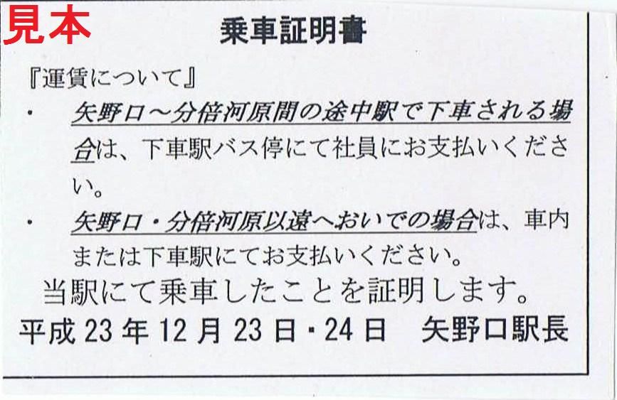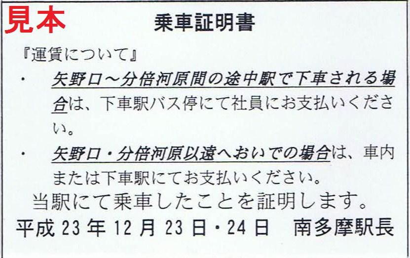 今回も完全に列車の運行が休止となった稲城長沼駅と南多摩駅で運休時間帯に購入しました。《乗車証明書》