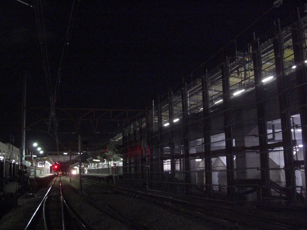 工事運休開始後に撮影。稲城長沼駅と同様に作業員の方々の出入りが頻繁に行われていました。
