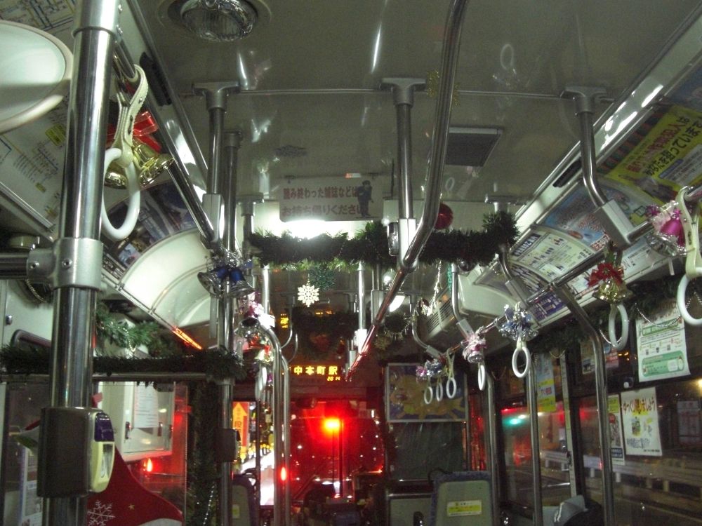 車内はデコレーションが施された状態のままで運行されました。〔京王バス南〕