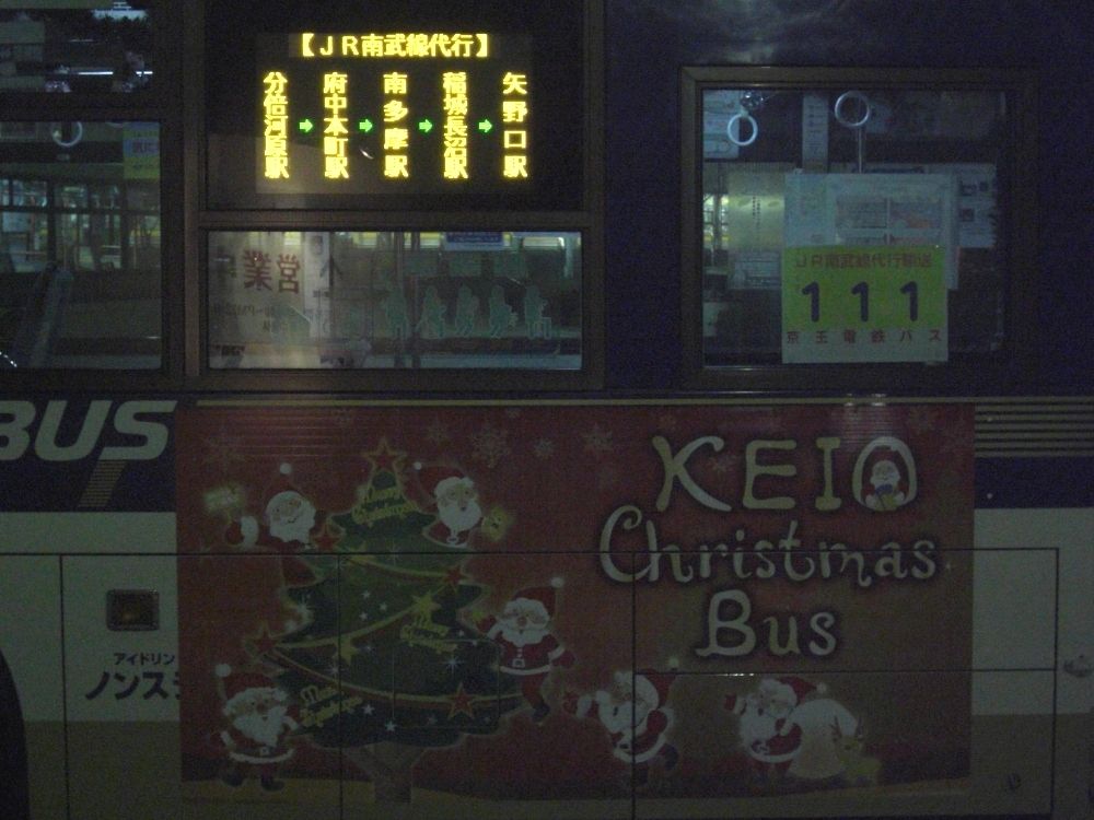 京王バス東の担当便(111号車)には『クリスマスバス』が使用されていました。分倍河原停留所で撮影。