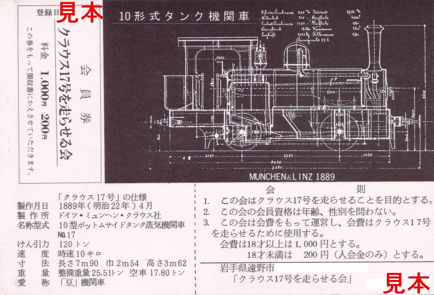 《クラウス17号を走らせる会 会員券》