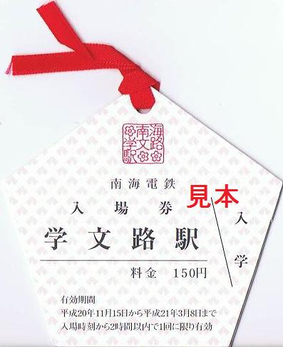 【合格祈願学文路駅入場券】