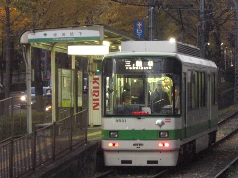 写真左は平成21年12月1日に学習院下電停にて撮影の8500形。