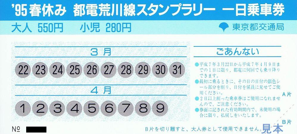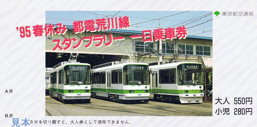 平成7年のものは、表面が都電の写真。裏面が日付用スクラッチのある横型の券でした。