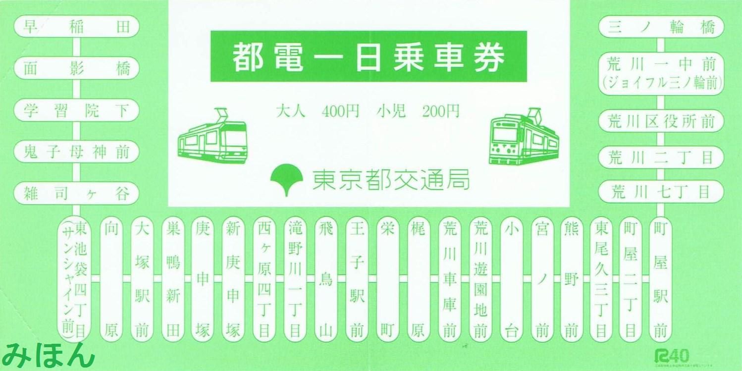 荒川電車営業所で収集した紙製の都営電車回数乗車券種類です。