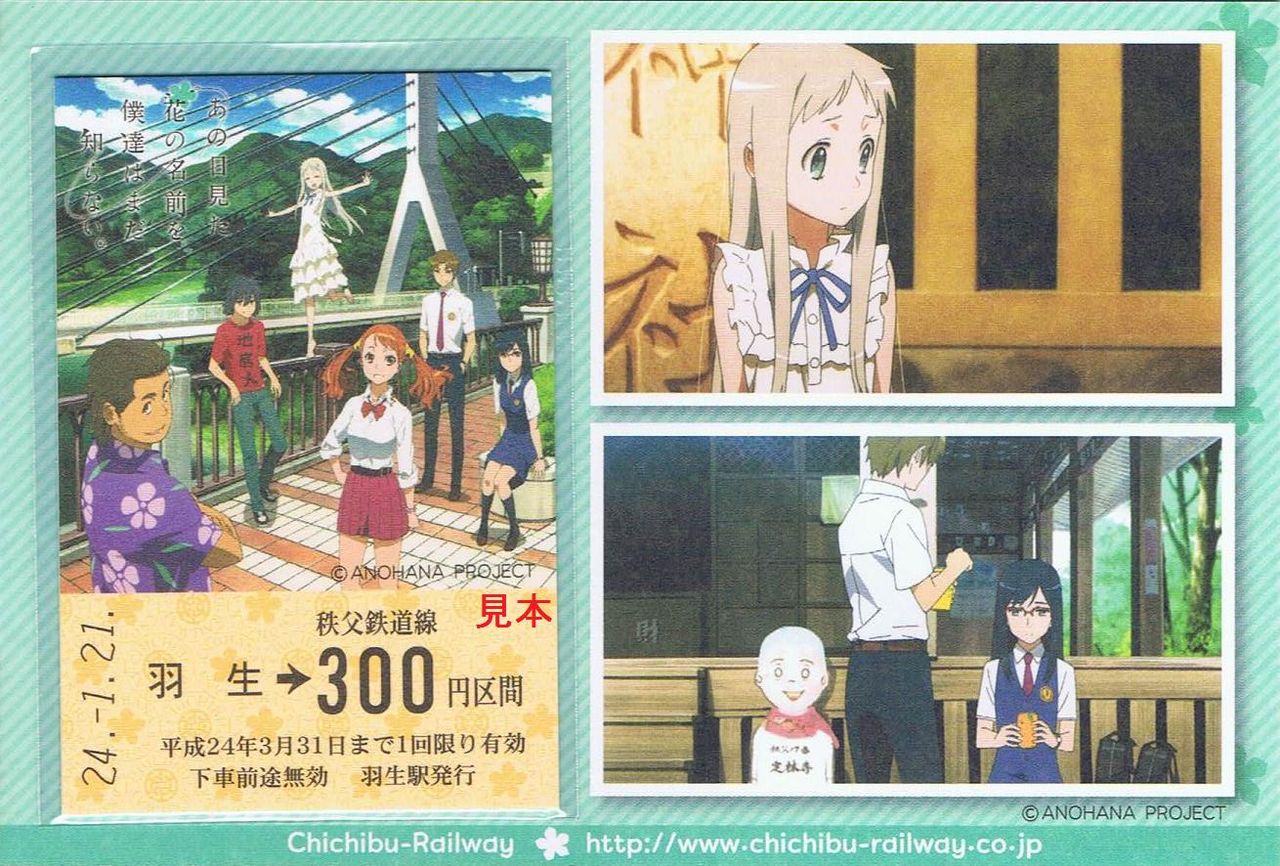 《あの花×らきすた 秩父鉄道・東武鉄道 合同記念乗車券(平成24年1月21日発売)》