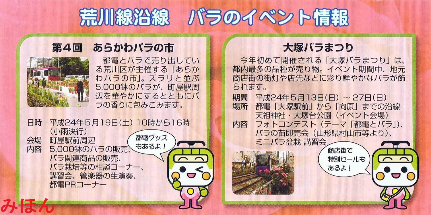 一日乗車券と同じサイズでバラ関連のイベント情報も付属しています。