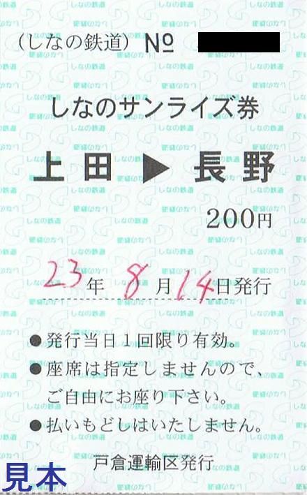 平成18年7月にもしなのサンライズ号全停車駅で収集していますが、当時は前日での前売も行っていたため全駅分が割と簡単に収集できました。しかし、最近では当日の当該列車改札の開始直前から発売のようで入手難易度が上がってしまいました。今回は上田駅と前回収集していない戸倉運輸区発行のものを入手しました。上田駅発行分については平成18年7月収集分と様式に変化はありません。