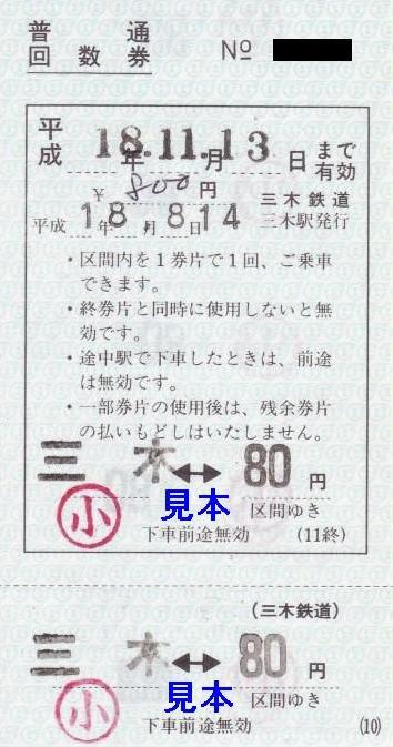 レールバスをデザインした金属製のプレートも付いており、豪華なつくりでしたが、硬券・プレート共に台紙に強力に接着されている為、それぞれの出来が悪くないのに評判はあまり良くなかったのではないでしょうか(平成18年8月14日の訪問日には三木駅で未だ販売されていました)。======================================
