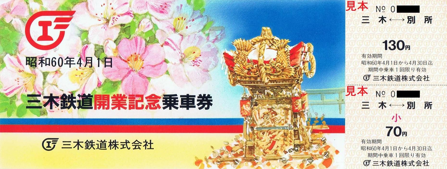 《三木鉄道開業記念乗車券(昭和60年4月1日)》