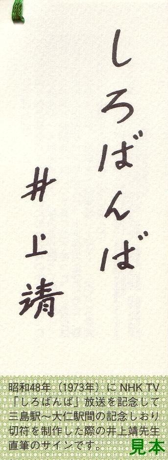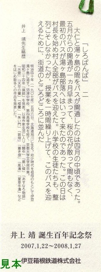 ¡¡°ËƦ»Ô¤Ç³«ºÅ¤µ¤ì¤Æ¤¤¤¿¡Ø°æ¾åÌ÷À¸ÃÂ100ǯº×¡Ù¤òµÇ°¤·¤Æ¡¢°ËƦȢº¬Å´Æ»¤Ç¤Ï¤«¤Ä¤ÆÆ±¼Ò¤ÎµÇ°¾è¼Ö·ô¤Ç»ÈÍѤµ¤ì¤¿°æ¾åÌ÷ľɮ¥µ¥¤¥ó¤ÈƱ»áºîÉÊÃæ¤ËÅо줹¤ë°ËƦȢº¬Å´Æ»´ØÏ¢¤Îµ½Ò¤ò3¼ïÎà¤Î¤·¤ª¤ê¤Ë¤·¤ÆËç¿ôŽ¥ÇÛÉÛ²Õ½ê¸ÂÄê¤ÇÇÛÉÛ¤·¤Æ¤¤¤Þ¤·¤¿¡£¡¡¤½¤Î¤¦¤Á¡¢Ï©Àþ¥Ð¥¹³«Ḁ̈С¼¥¸¥ç¥ó¤ÏÊ¿À®19ǯ12·î22Æü¤«¤é¡ØËè½µÅÚÍˤθá¸å¤Ë»°Åç±Ø¤òȯ¼Ö¤¹¤ëÍÙ¤ê»Ò¹æ¼ÖÆâ¡Ù¤Ç¤Î¤ßÇÛÉÛ¤·¤Æ¤¤¤Þ¤·¤¿¡£¼ÂºÝ¤ËÊ¿À®20ǯ1·î19Æü»°Åç±Ø15:10ȯ½¤Á±»û¹ÔÍÙ¤ê»Ò¹æ¤òÍøÍѤ·¤¿¤È¤³¤í¡¢»°Åç±Ø¤«¤é¾è¤ê¹þ¤ó¤Ç¤¤¿°ËƦȢº¬Å´Æ»OB¤ÎÊý¡¹¤¬»°ÅçÅÄÄ®±ØÈ¯¼Öľ¸å¤«¤é°ËƦȢº¬Å´Æ»Ž¥Å쳤¥Ð¥¹Ž¥¼«¼£ÂΤ¬ºîÀ®¤·¤¿´Ñ¸÷¥Ñ¥ó¥Õ¥ì¥Ã¥È¤È°ì½ï¤ËÇÛÉÛ¤·¤Æ¤¤¤Þ¤·¤¿¡£