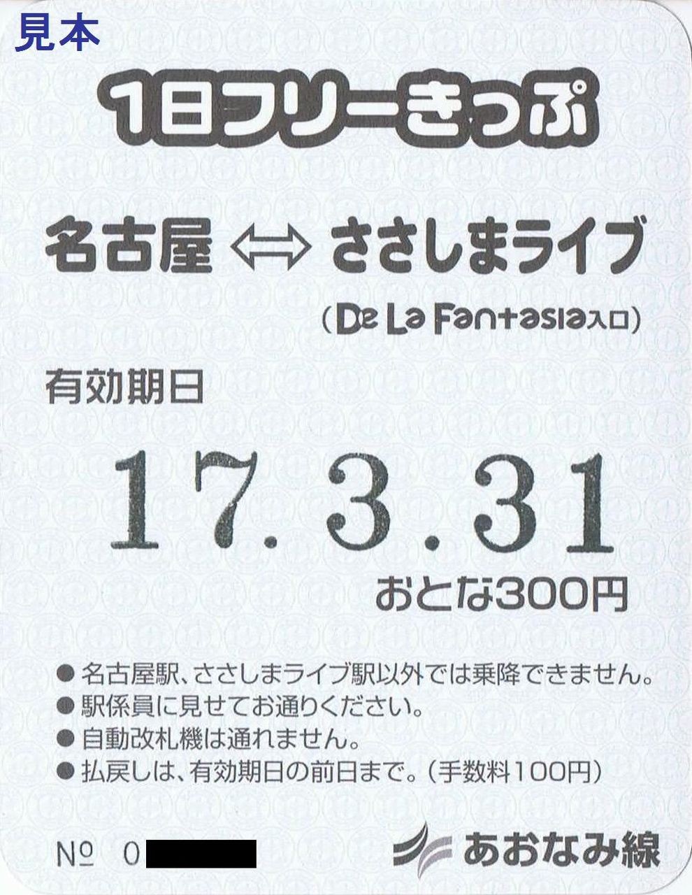 《名古屋⇔ささしまライブ 1日フリーきっぷ(平成17年3月31日購入)》