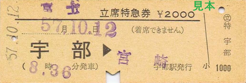《宇部駅発行 富士立席特急券(昭和57年10月12日)》