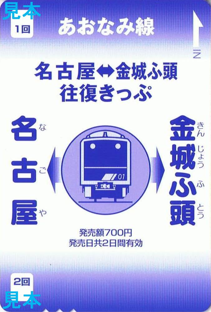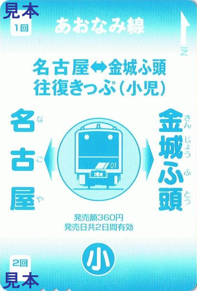 金城ふ頭でのイベント開催時に名古屋駅で臨時発売される磁気カードタイプの往復乗車券で、小児用と大人用の2種類あります。時間限定発売となっており、収集日は10時に発売終了となっていました。