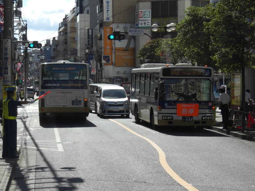 また、調布駅北口停留所(上り)では代行バスの係員や誘導員の数が多すぎて停留所からはみ出したところに立っている影響で、停車する代行バスの寄せ方が足りず、他の一般路線バスの通行に支障をきたしている場面も見ました。