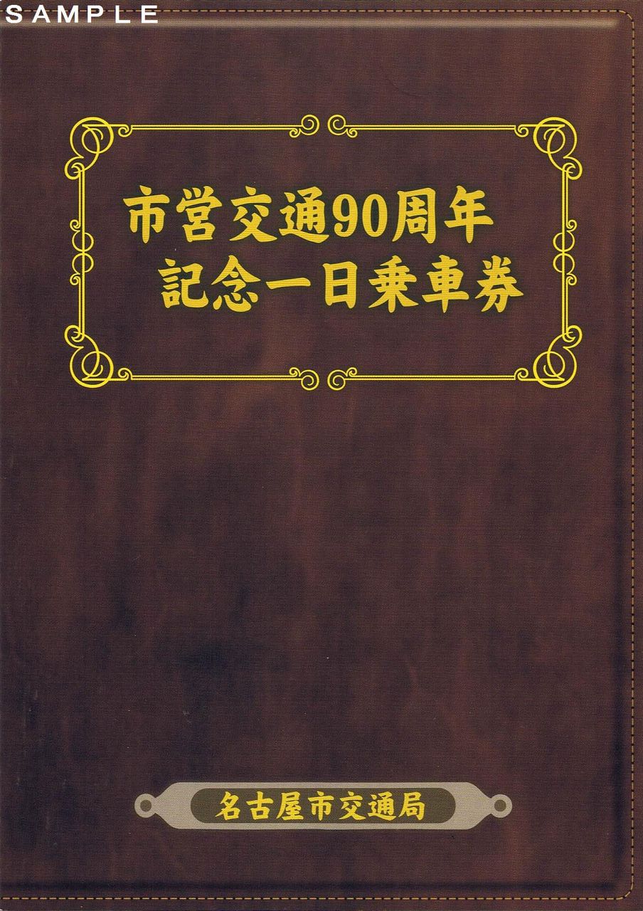 名古屋市営交通90周年を記念して発売された記念一日乗車券の第一弾。5,000枚限定発売。今後、バスデザイン(第二弾)、地下鉄デザイン(第三弾)が発売予定となっており、この乗車券には全種類が収納できる台紙(写真左)が付いています。【関連記事】