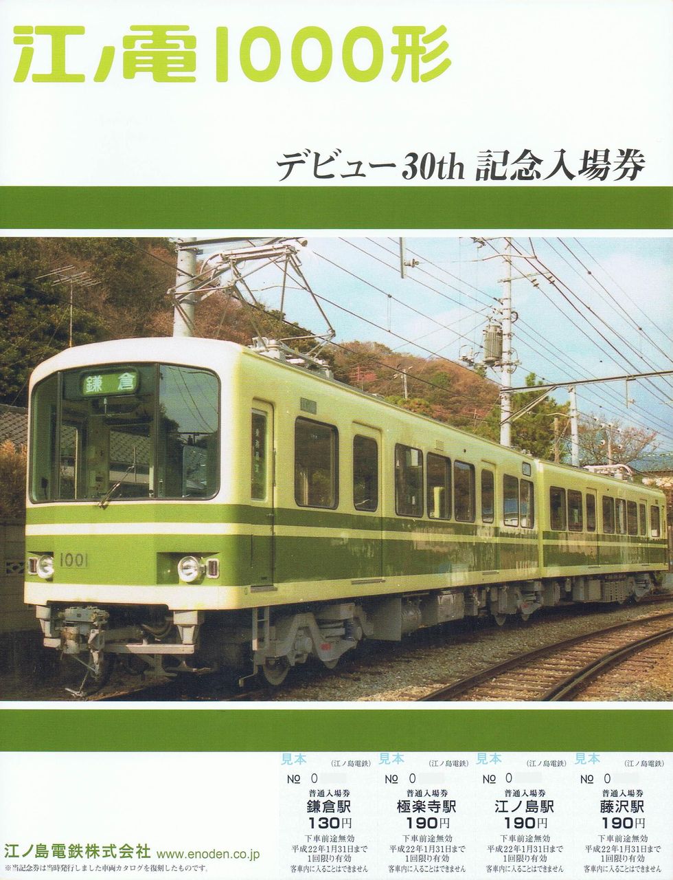 《江ノ電1000形デビュー30th記念入場券(平成21年12月13日発売)》
