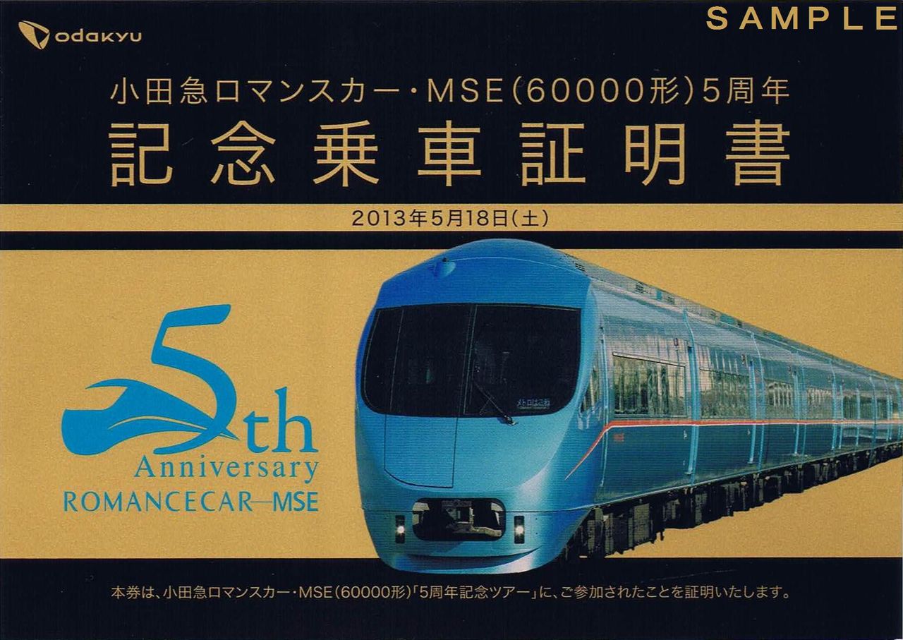 《小田急ロマンスカー・MSE(60000形)5周年記念乗車証明書》