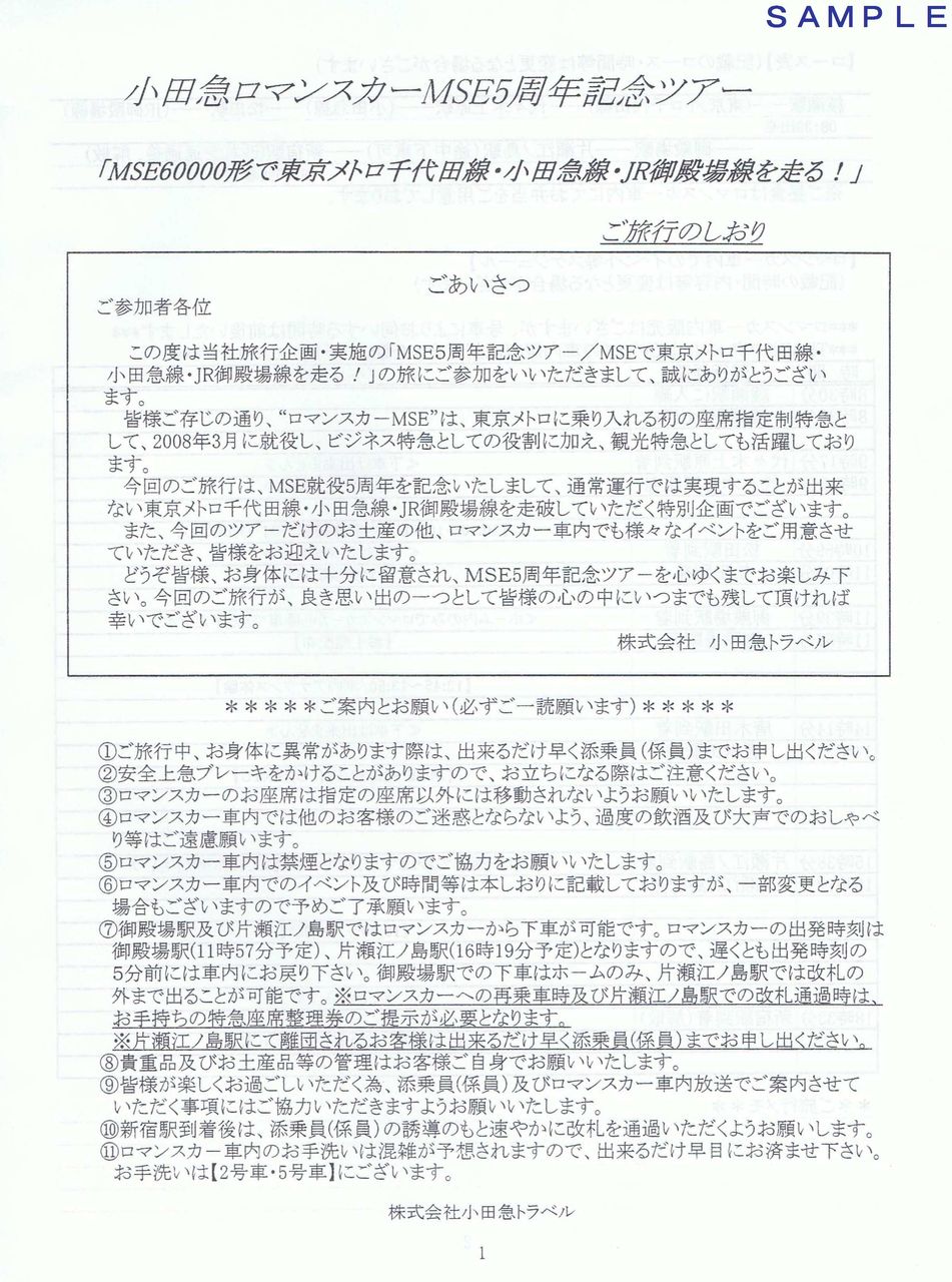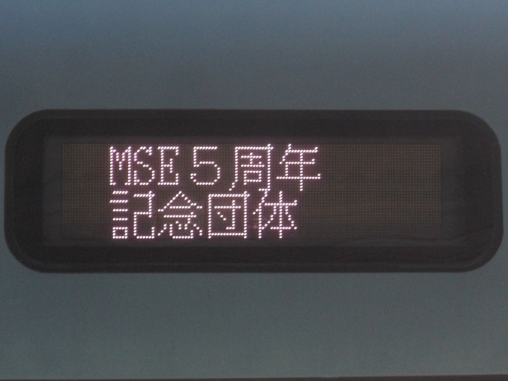 復路の御殿場線内で配布。台紙・MSE正面デザインと5周年ロゴデザインの2種類のピンバッジがセットになっています。《MSE5周年記念ツアーオリジナルパンフレット》