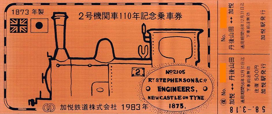 ※平成25年5月13日更新(2号機関車100年・開通55周年・2号機関車110年記念乗車券紙券)