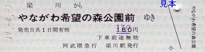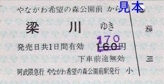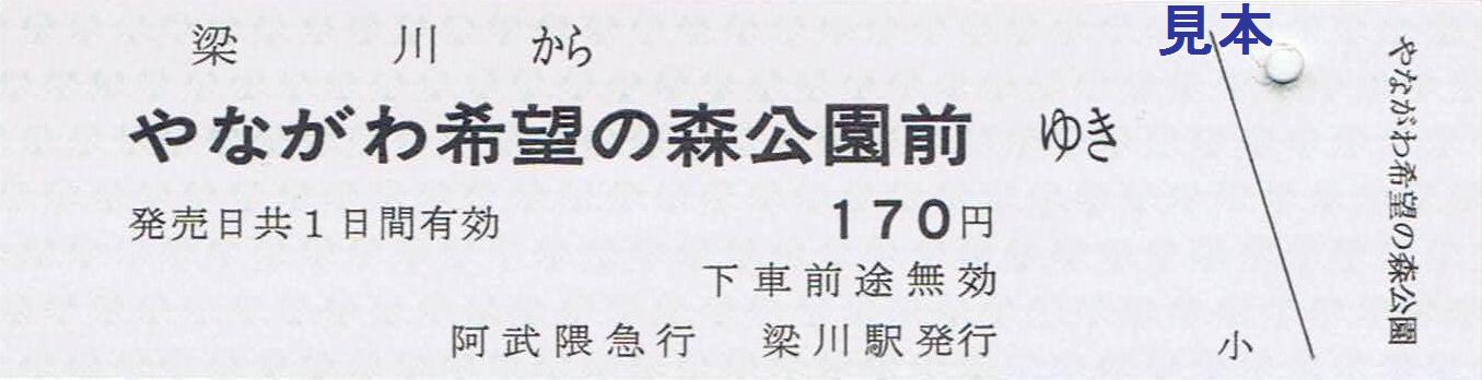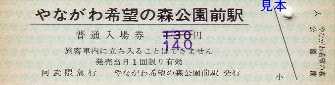 平成2年訪問時には車内・駅ともにこの券を扱っていました。入場券としての発行も出来るもので、写真のものはやながわ希望の森公園前駅で入場券として購入したものです。