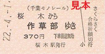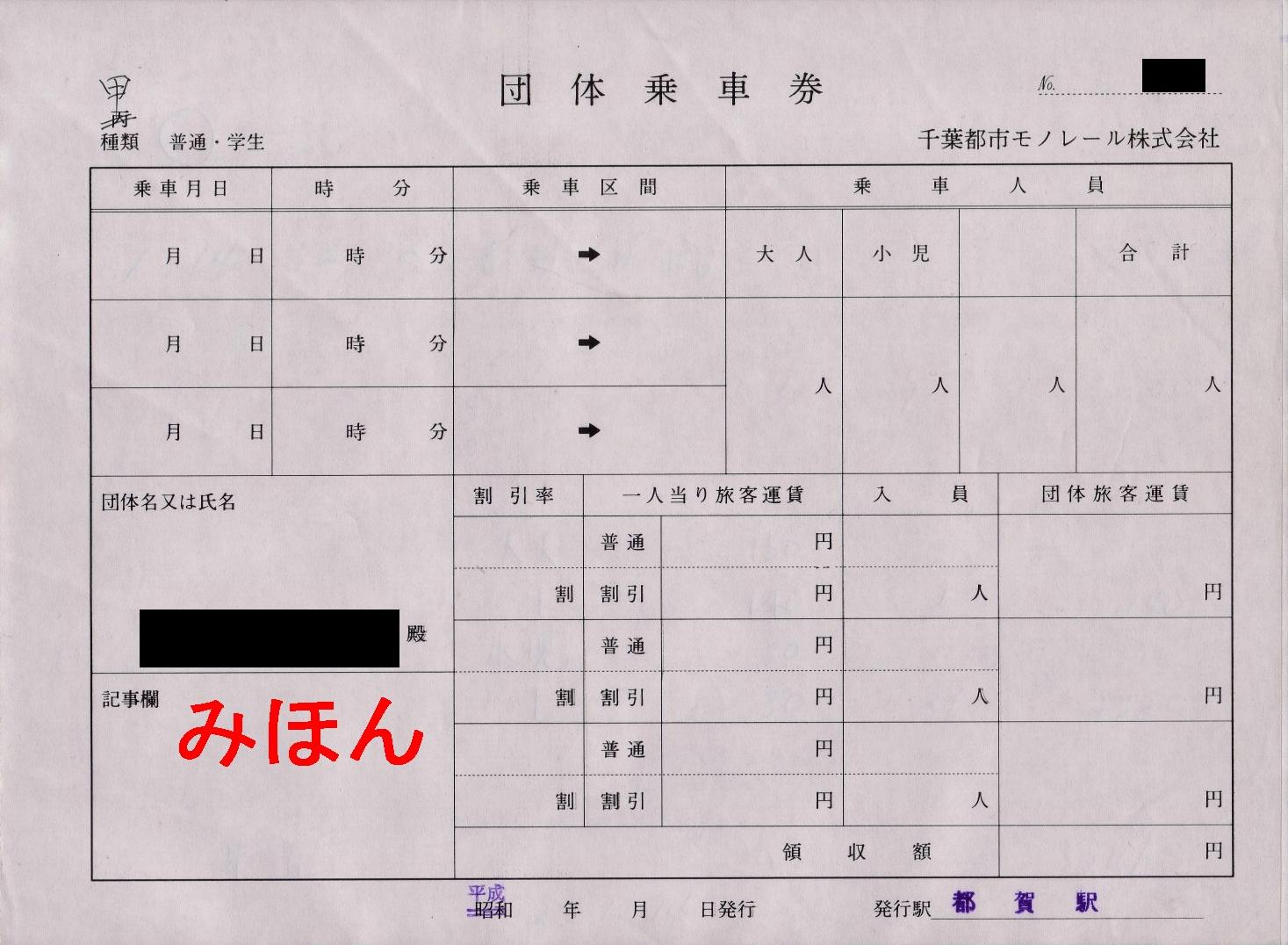 最近では千葉駅の硬券入場券や記念硬券の積極的な販売を行う千葉都市モノレールですが、初期の手売り券は団体乗車券くらいでした。