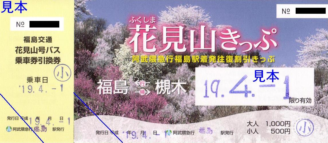 阿武隈急行線福島までの往復と福島交通バス花見山号の乗車券をセットにしたもの。