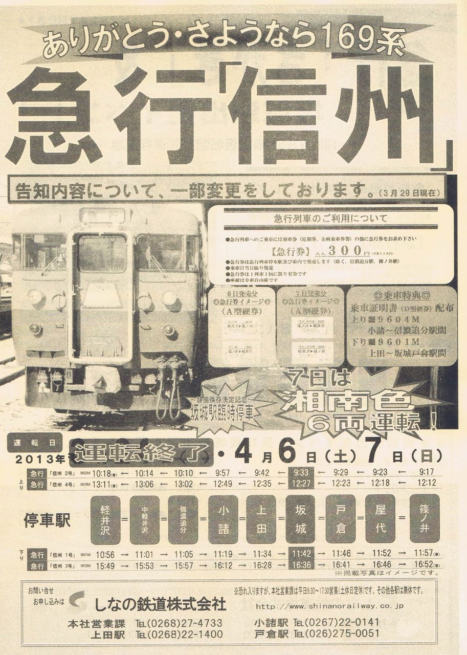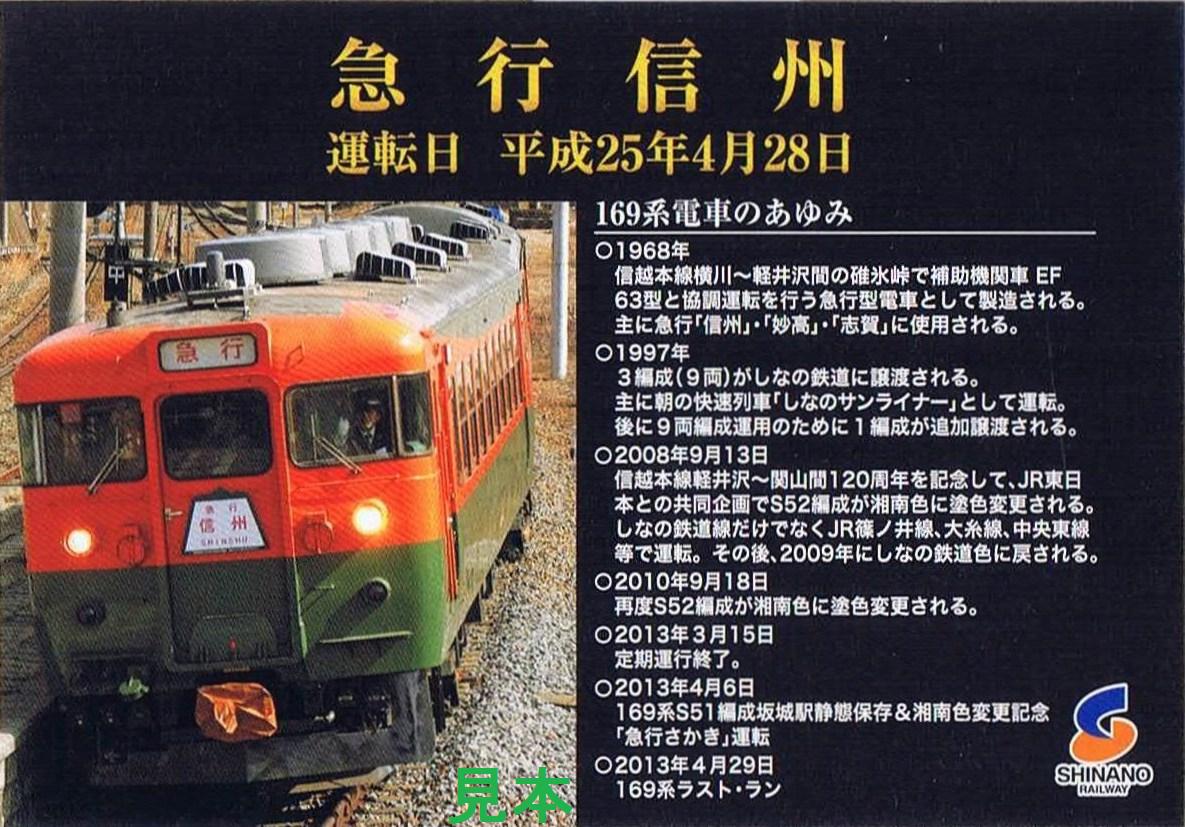 ¡¡Ê¿À®25ǯ4·î27¡Á29Æü¤Î169·Ï¥Õ¥¡¥¤¥Ê¥ë¥¤¥Ù¥ó¥È¤Ç±¿¹Ô¤µ¤ì¤¿²¼¤êÊýÌ̤ÎÎ×»þµÞ¹ÔÎó¼Ö(µÞ¹Ô¿®½£¹æ1ËÜ)ÍѤε޹Էô¡£A·¿¹Å·ô¡£¾å¤ê¤Ï³ÆÎ×»þÎó¼Ö¶¦ÄÌ(»Ö²ì¹æŽ¤¤¢¤ê¤¬¤È¤¦Ž¥¤µ¤è¤¦¤Ê¤é169·Ï¹æ)¤Î¤¿¤áÎó¼Ö̾¤ÏÆþ¤ê¤Þ¤»¤ó¤¬¡¢²¼¤êÊýÌ̤ÎÎ×»þÎó¼Ö¤Ë¤Ä¤¤¤Æ¤ÏµÞ¹Ô¿®½£¹æ1ËܤÀ¤±¤Ê¤Î¤Ç¡¢²¼¤ê¤Î¤ßÎó¼Ö̾¤òÆþ¤ì¤Æ¤â¤è¤¤¤Î¤Ç¤¹¤¬¡¢Íͼ°¤ò¤·¤Ã¤«¤ê·¤¨¤ë¤Î¤Ï¤·¤Ê¤ÎÅ´Æ»¤Î¤³¤À¤ï¤ê¤Ç¤·¤ç¤¦¤«¡©