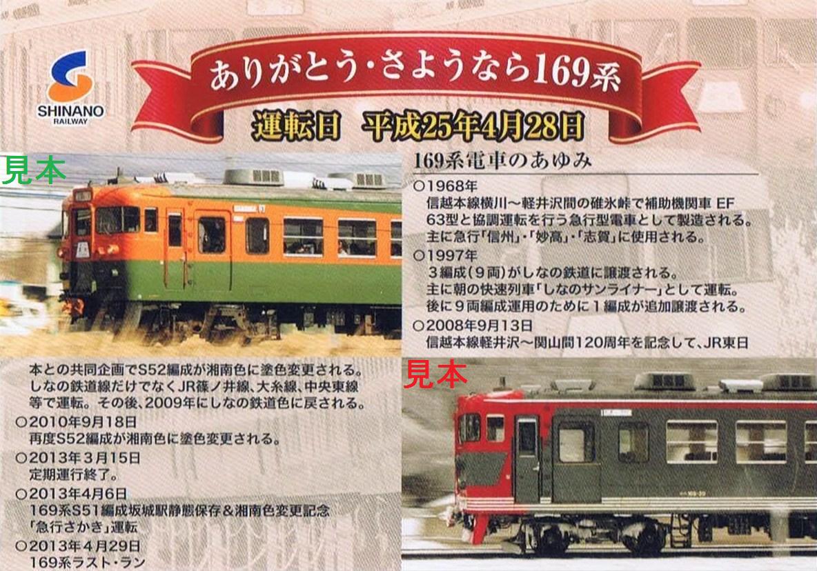 ¡¡¥¤¥Ù¥ó¥È»þ¤Ë¤ª¤±¤ë¤·¤Ê¤ÎÅ´Æ»169·Ï¤ÈĹÌîÅÅÅ´2000·Ï¡¢2100·Ï¤È¤ÎʤӼ̿¿Åù¤ò»ÈÍѤ·¤Æ¤¤¤Þ¤¹¡£¡¡Ê¿À®24ǯ3·î¤Ë±¿Å¾¤µ¤ì¤¿µÞ¹Ô¥ê¥Ð¥¤¥Ð¥ë»Ö²ì¹æ¤Î»ØÄêÎó¼ÖŽ¥»ØÄê¶è´Ö¤Ë¾è¼Ö¤·¤¿ºÝ¤Ë¥×¥ì¥¼¥ó¥È¤µ¤ì¤¿³¨ÍÕ½ñ¤È¥Ç¥¶¥¤¥ó¤ÏƱ¤¸¤è¤¦¤Ç¤¹¤¬¡¢ÍÕ½ñɽÌ̲¼Éô¤ËÎó¼Ö̾¤Î°õºþ¤¬Æþ¤ë¤è¤¦¤Ç¤¹¡£