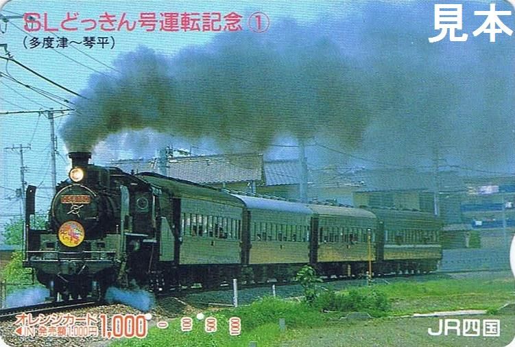 平成元年5月に土讃線多度津〜琴平間で運行された『SLどっきん号』はJR西日本所属のC56160蒸気機関車+旧型客車で運転されました。列車名は瀬戸大橋開通あたりに使用されていたJR四国のCM用キャッチフレーズ『どっきん四国』から名付けられたものだと思います。