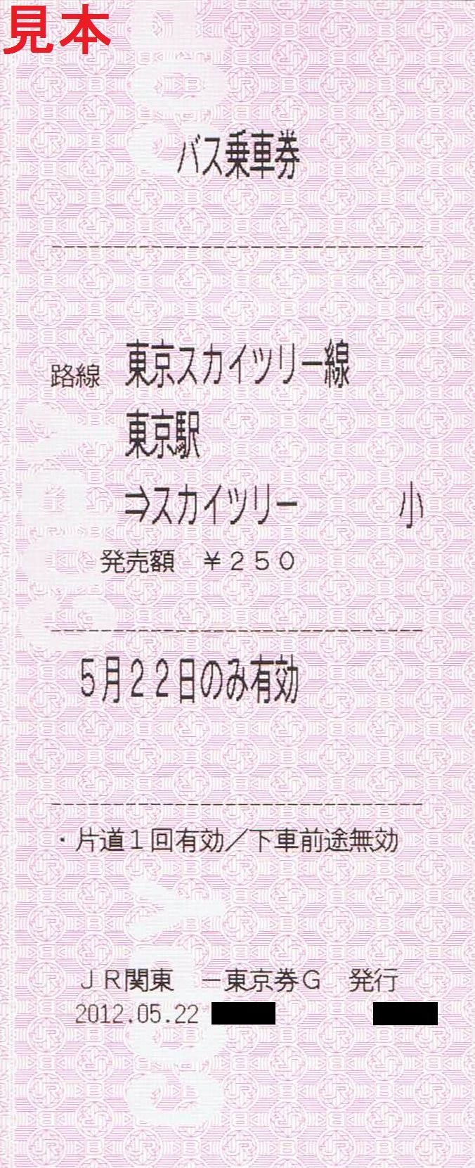 《JRバス関東・東京駅発行 乗車券(平成24年5月22日購入)》