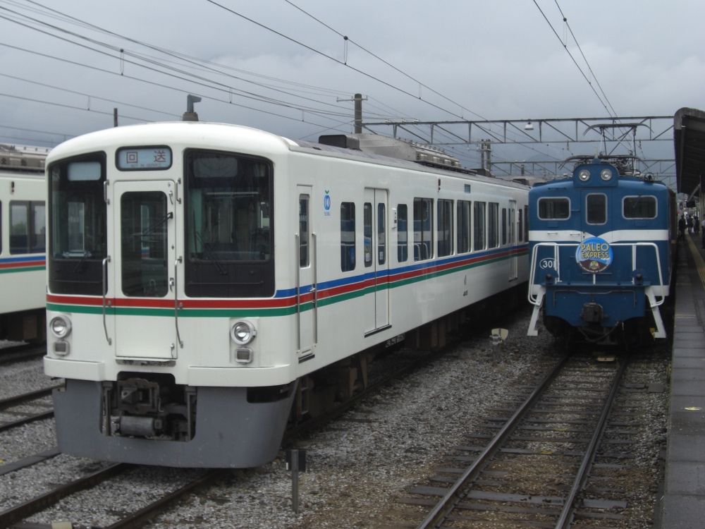 秩父駅にて撮影。熊谷側にデキ301(写真左上)、三峰口側にデキ201(写真左)が連結されていました。