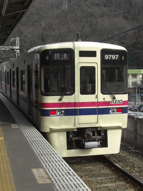 京王電鉄高尾線高尾駅にて撮影。この列車に使用された京王9000系30番台は10両編成。停車中にしか撮影チャンスがなく、ホームぎりぎりの位置に停車するため、デカい写真しか撮れませんでした。折り返しの回送を狙いましたが、私のレベルではピンボケ写真しか撮れませんでした。