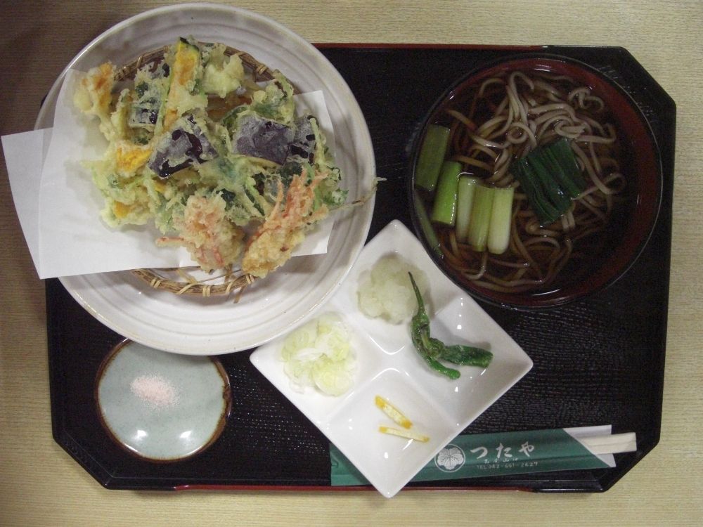 記念品交換後は高尾山口駅近くの冬そばキャンペーン協賛店『つたや』に入りました。写真左は同キャンペーンにあわせて京王線・都営地下鉄の駅で配布される『高尾山そばマップ』に掲載されている『九条葱と寒牡丹海老のかき揚げそば』(税込1,500円)。12時頃に入店しましたが12時半過ぎにはかき揚げが無くなり発売終了となっていた人気メニュー。