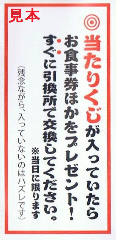 私は映画のペア鑑賞券が当たりました。写真はその当たりくじの表と裏です。爪楊枝ケースに両面テープで貼り付けられていました。