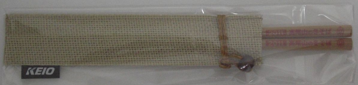 乗車記念マイ箸です。KEIOのタグが付いた麻袋入りで、箸自体には2011の文字が入っています。京王電鉄ホームページに掲載されている写真では麻袋の色が3種類あるようです。