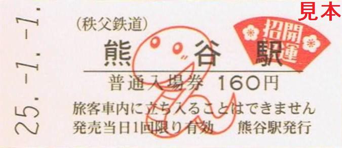 平成26年1月3日の熊谷駅で配布。同日に運行されたSL秩父路はつもうで号乗車記念証が終了してしまったため、代わりに配布。======================================