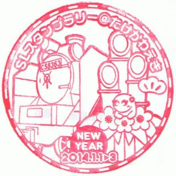 先述の乗車記念証の裏面に押せる記念スタンプです。《SLスタンプラリー正月仕様(平成26年1月1〜3日)》