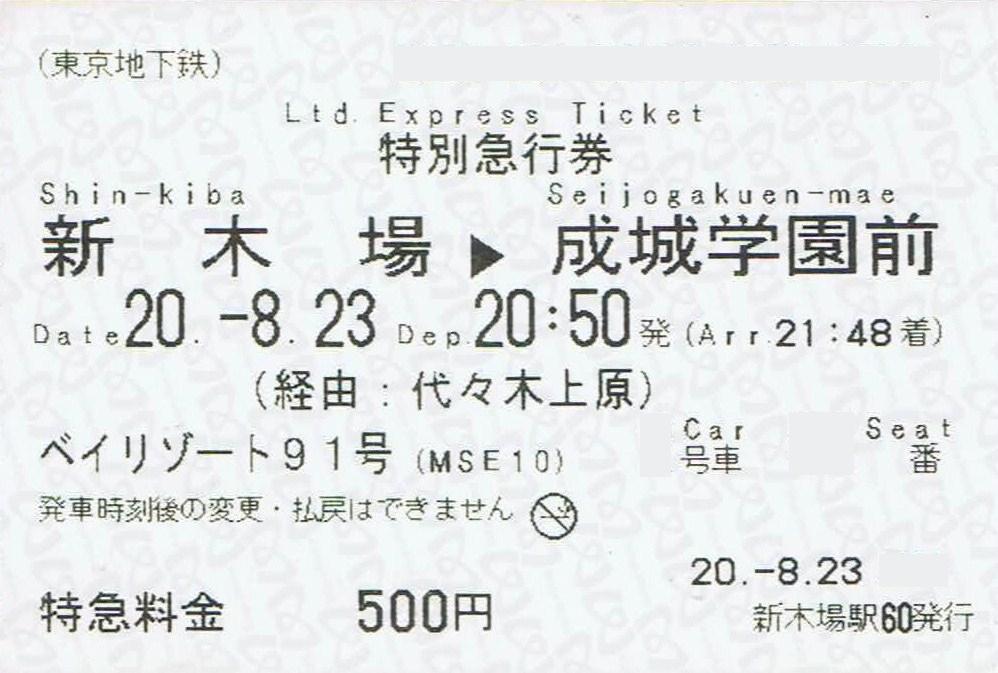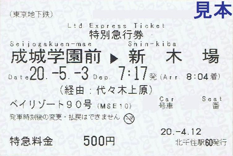 【特別急行券(東京地下鉄駅の券売機発行分)】