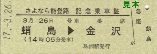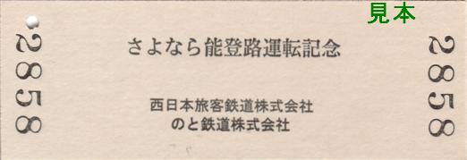 《さよなら能登路記念乗車証》